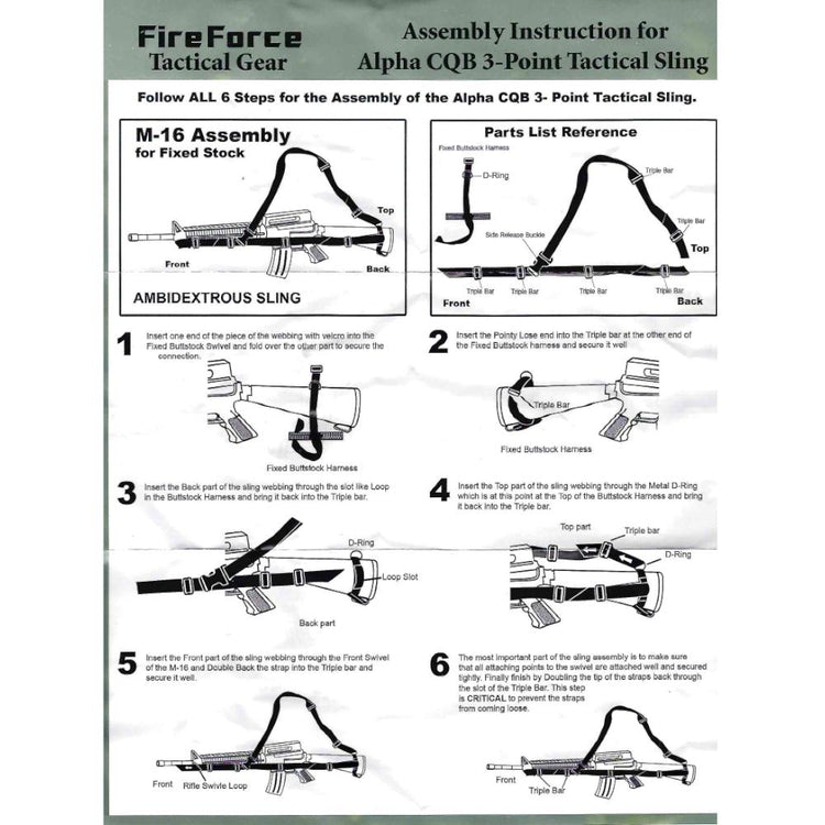 - Rear harness loop included for attaching to fixed stock M16's