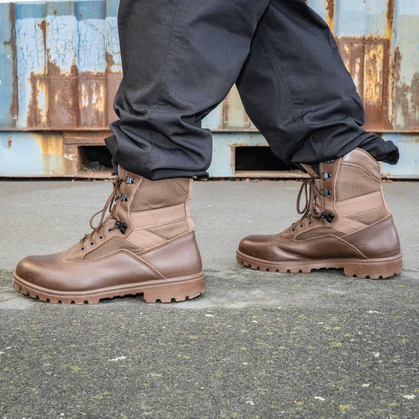 These boots were designed with comfort and agility in mind to keep British troops mobile on patrol. The British Army's specifications for a patrol boot are 'medium to low combat threat with light patrol pack.' Equipped with full grain leather outer lining these will keep your feet adequately protected from scrapes and knocks. The tongue and ankle/collar areas are made from polyester and have a soft, breathable Coolmax® lining. This will give you added ankle support as well as keeping a good bit of moisture out. The soles have anti-static and oil resistant properties so you can keep upright while negotiating hazardous surfaces.