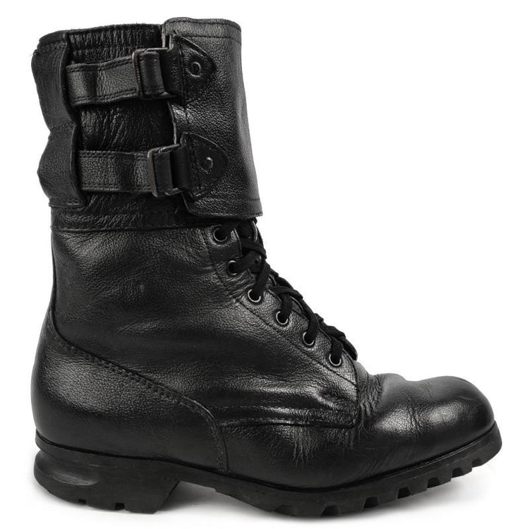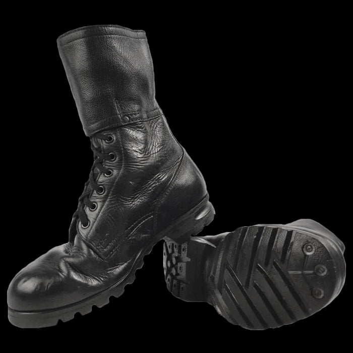We estimate these boots are dated around the 1980's—when men were tough and boots were tougher. The design consists of metal eyelets for the laces, leading up to the double straps at the top. These straps have a few different fastening styles but all provide the same end result. Some are secured with two D-rings, others are box frame or regular frame style buckles. The grip on the rubber soles may also vary from the pictured boots. Regardless of the slight variations, you're getting some old-school, rugged combat boots for a low surplus price.