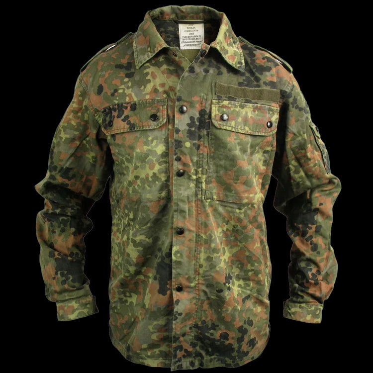 More high quality gear from the German Army! This field shirt is hard-wearing, practical and built for dragging yourself through the dirt. With the German flecktarn camouflage pattern, this shirt will effectively blend into temperate woodland environments. Match this shirt with flecktarn trousers and headwear for an unbeatable uniform.
