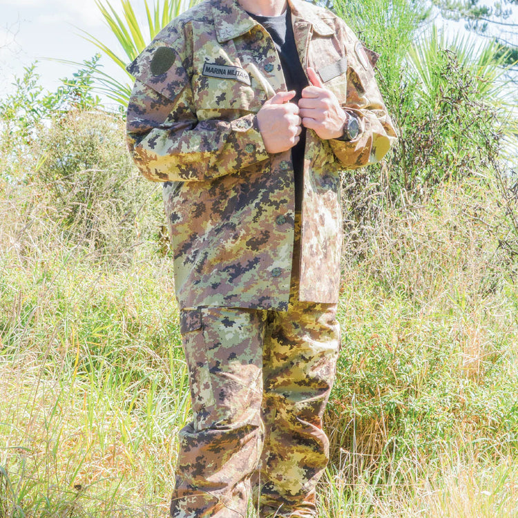 Ah Italian mimetico vegetato... Why are they so many funky colours. Well fuggedaboudit because these are brand new! That's right, a uniformly coloured uniform!