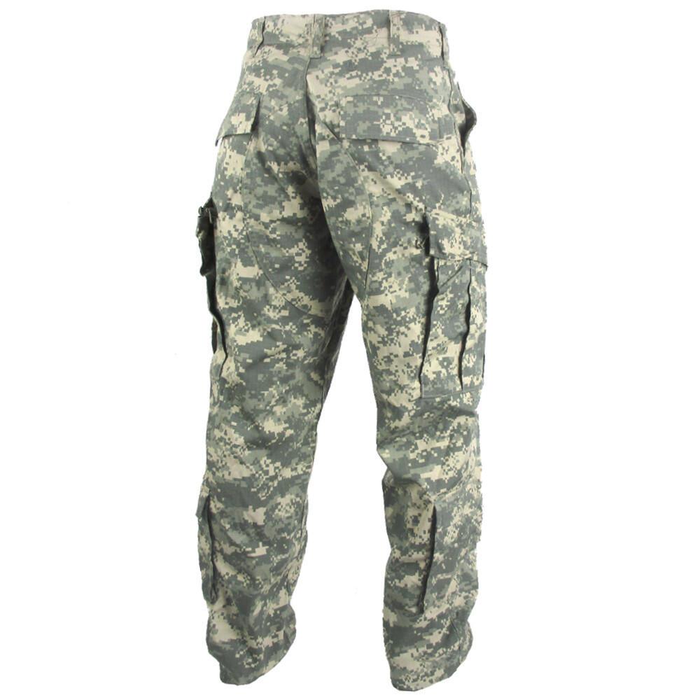 The ACU (Army Combat Uniform) trouser (or ACU pant) is worn with a two-inch nylon web belt. For combat purposes, each knee has hook & loop pouches for inserting padding to improve the resilience of the trouser. Storage includes two slash pockets, two forward-tilted cargo pockets, two lower leg pockets, and two rear buttoned pockets. The cargo and lower leg pockets feature hook & loop closures for quick access while on the move.