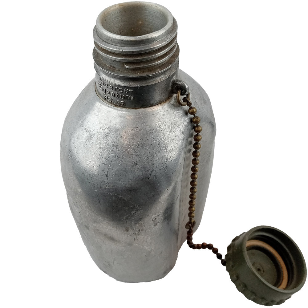 From the Bundesheer (the Austrian Armed Forces) comes this great wee canteen that feels like it can take a decent tumble down the Alps and give Arnie a decent grip strength test. Being made of aluminum they still remain light, but many have seen real service and retain dings and dents. Condition varies - some canteens have small marks while others have larger dents (see images for examples). Items are picked at random, so denting and lid colour will differ from piece to piece.