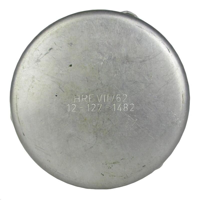 Made of Aluminium these are robust and hard to dent. The lid twists on tightly and has a rubber seal to keep it air tight and the contents fresh. The bottom half of the tin has a plastic bowl you can remove if you wished to store something else such as tobacco. The dish lid has a Bundesadler eagle imprint and on the bottom on the tin it has the NSN number.