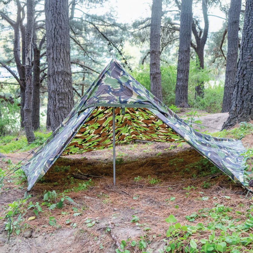 Setting one up is easy with the right tools and know-how, or easy to learn otherwise! Your ideal setup of a basha will consider many things, including the purpose (such as concealment or storage), weather (factors like wind direction, rain) and environment (are you anchoring to trees or need extra poles?). Plenty of tutorials are out there and everyone loves practicing building forts out the back! The British Army has multiple uses for these - shelter to sleep under with a bivi bag, storing gear from the rain or even for casualty evacuation.