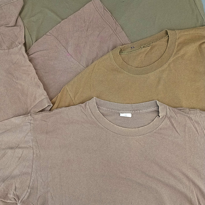 Value Grade US Army shirts, brown coloured edition. Would also make good post apocalyptic layers. These have discoloured pits, stains or small holes. Most of these are also pretty faded. Not judging if you want these.