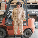 Unissued AFV overalls, hells bells! These beige overalls would be issued to British Army vehicle crewman and are filled with features and details that makes them both comfortable and useful. The resistant material is the perfect protection for crewman working conditions. Thigh mounted ID windows allow crewman to keep identification visible at all times. Cargo pockets provide space for extra gear and equipment. Taking off overalls to go to the bathroom is a big pain so in "emergency situations", a back flap can be opened for the user's relief. These are a jolly good pair of coveralls for workshops and general heavy duty rapscallionism.