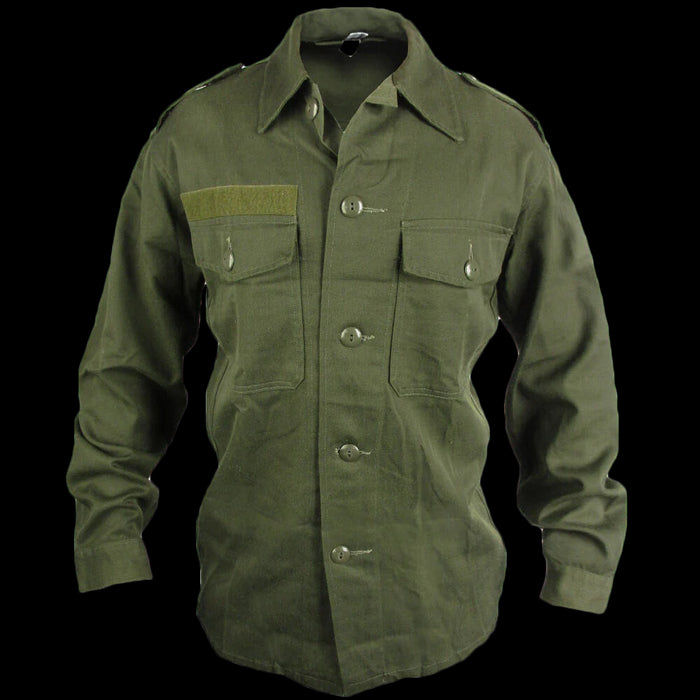 A simple, yet classic Austrian Army shirt, olive green in colour with a buttoned front. For any "Osterreich Bundesheer" collectors out there, our latest shipment unfortunately does not have any patches and there may be visible marks/loose threads where the sleeve patch was removed. The viscose and polyester blend is a strong and durable fabric which retains the feel of cotton. Two button up pockets are featured on the front with a hook & loop name strip above the right pocket.