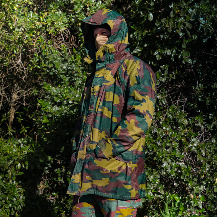 These jackets are genuine Belgian Army wet weather jackets. Similar to Gore-Tex, these are made by Seyntex. While sometimes we have unissued stock of these jackets (most of the time in larger sizes only), we now have these used ones. Yippee! These are in nice condition, with a few scuffs (see image) but mostly just needing a wash.