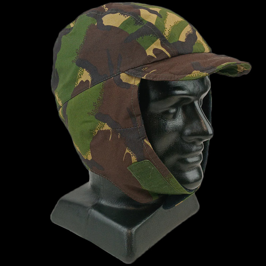 This hearty wee DPM cap is primo for when it's cold and wet out. Lined with fleece for warmth and a waterproof Moisture Vapour Permeable (MVP) membrane (like a British Gore-Tex). This MVP layer helps garments shed moisture from sweat while keeping the wet stuff on the outside, out. The peak is wired for the wearer to bend into all kinds of wacky and useful shapes.