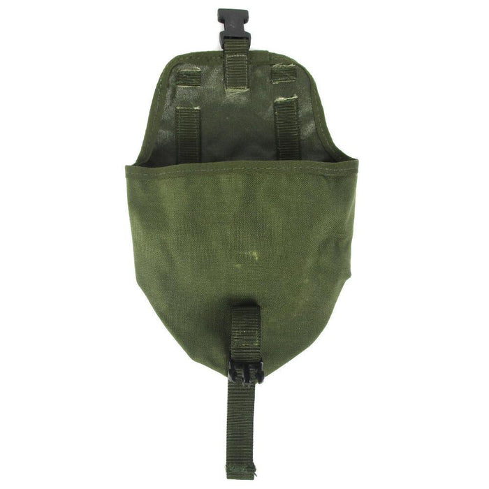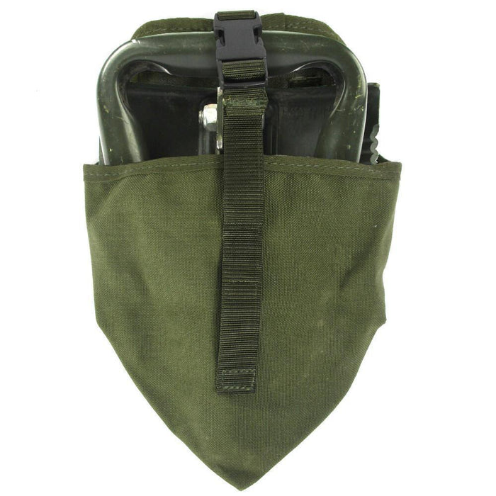 This British Army cover will hold a standard size NATO tri-folding shovel by securing it in with a quick release buckle. The PLCE (Personal Load Carrying Equipment) webbing will attach to compatible gear or any belt with a width of 5cm or less. These covers have been adjusted to have one buckle, rather than three, for faster and easier operation.