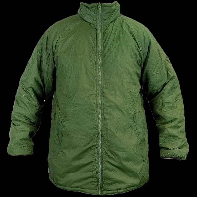 These are what the British Army often term 'softies' - or what the official label calls them; 'thermal jacket, reversible.' Basically if you are a heading somewhere cold (Scotland for example, or way worse - Norway) these are intended for a mid layer. They are very roomy and internally lined with puffy polyester that is designed to trap in the warmth your body is generating. Needless to say, you will need a hard shell layer over the top of these to stop wind chill from ruining your softies & body's natural hard work!