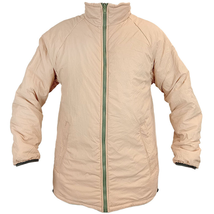 The features are very simple - zip up front running from top to bottom for quick donning/removal. Elasticated cuffs, draw cord waist and collar to trap in your bodies warmth. Another pretty neat feature is these are reversible because yes, believe it or not - the desert does get very cold at night so the British Army have kindly made both sides different colours for desert & woodland environments (pockets on both sides too!).