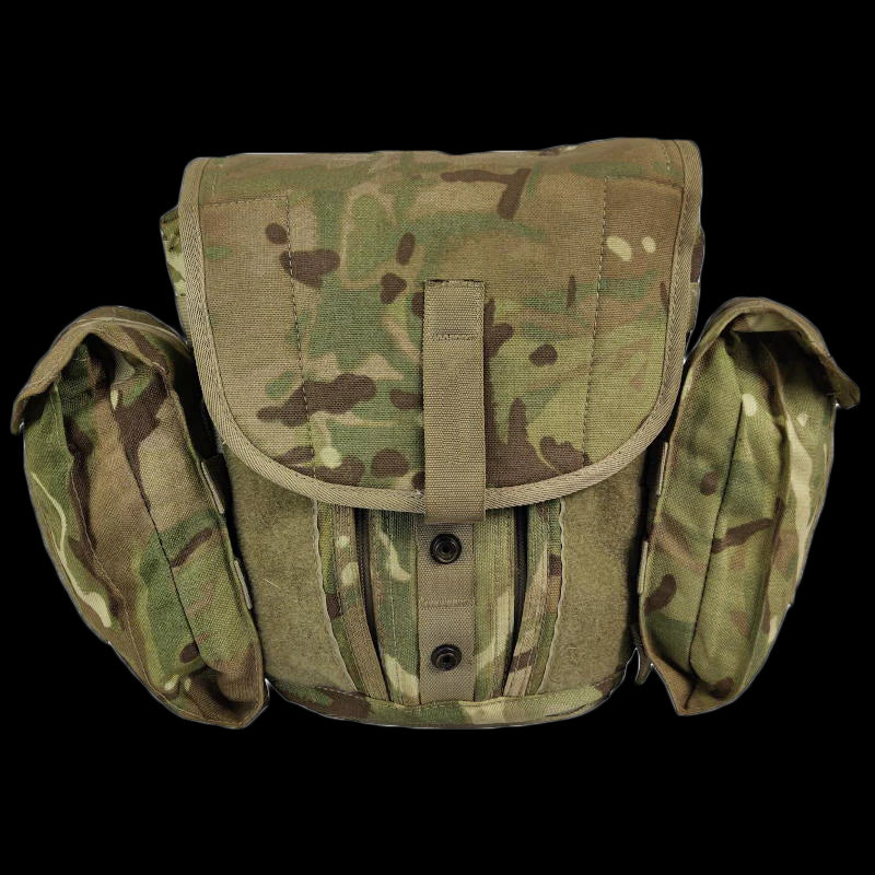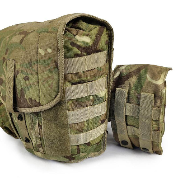 This genuine British pack is given to any soldier issued a gas mask. It features a main compartment designed to carry the gas mask and its components. The side pouches are utilized for the storage of gas masks filters. Soldiers attach these packs to their thigh, strapping it around their waist. Our latest batch may not come with the bottom, smaller strap. Although this is the preferred military method, the pack also functions fantastically as a side bag.