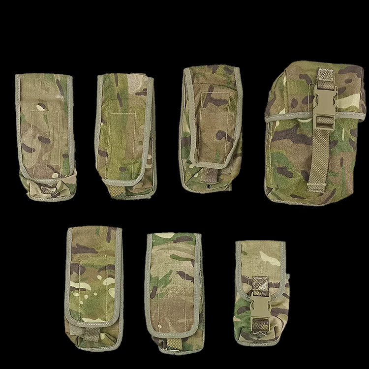 The attachments consist of a range of pouches and accessories that can be fitted to the vest, allowing configurable load carrying capability, tailored to the needs of the individual (popular with paintballers and airsofters). The accessories and pouches that come in this set are outlined below.
