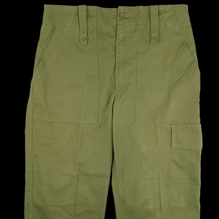 Here we have a great pair of combat trousers from the British Army. Smart enough to wear casually as everyday pants or utilise them as combat trousers in paintball and airsoft. A moderate weight cotton weave provides some durability while being breathable. Deep slash pockets are perfect for general storage, as is the single button up back pocket. Mixed in are some pairs with a cargo pocket to the thigh, shown in the last image (these are picked at random). Side tabs are located on the waist, for adjusting the size without the need for a belt.