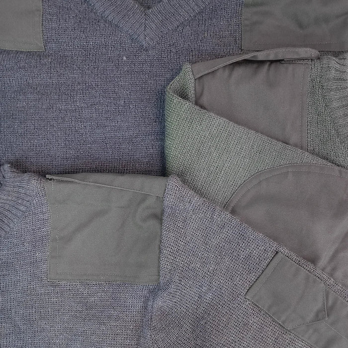 Cant let the Navy and Army have all the goods, the British Royal Airforce has a wool blend jersey too! These ''Utility'' versions do not have the wide ribbing weave like the commando style, but with a nylon blend, they are still nice and form conforming. These are RAF blue too of course, which is kind of like a dirty sky blue - though somewhat inconsistent (see image for an example of blues). The reinforced areas are really the only hint that this cosy jersey wasn't originally for the general public but it still blends in to civilian life just fine.