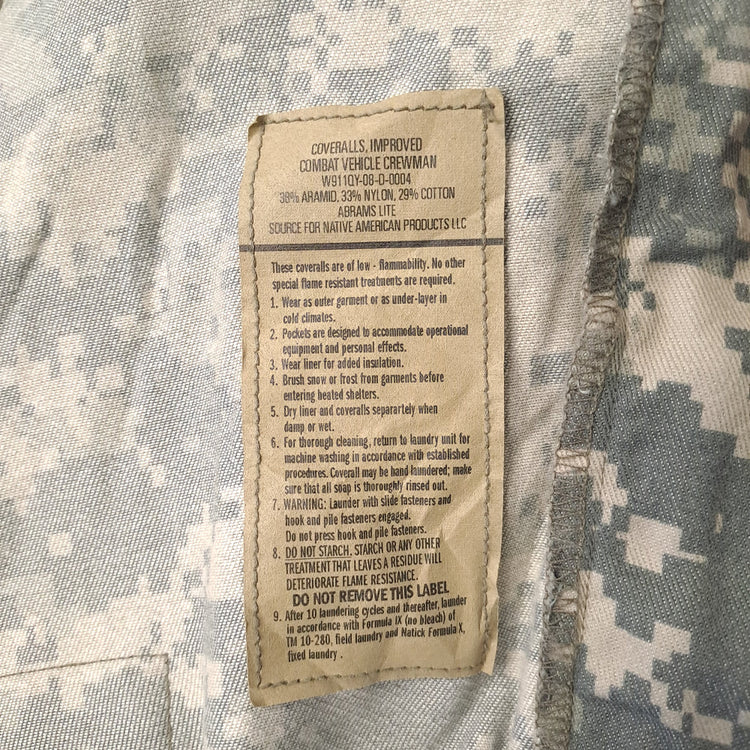 US Army CVC (Combat Vehicle Crew) coveralls in UCP (Universal Camouflage Pattern).