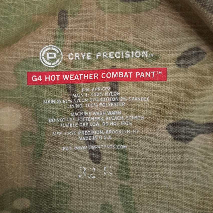 Ex-British Royal Marines issue Crye Precision G4 hot weather combat pants in multicam. Unlike the NSPA models, this still carries the external Crye branding.