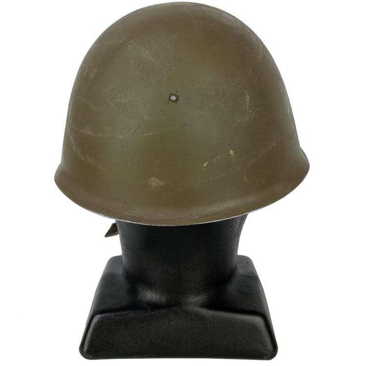 Back in the day, steel was the best form of protection from artillery rounds and flying debris. Czechoslovakian soldiers were issued this solid steel helmet during the Cold War era. Almost identical in shape to the Russian SSH40 helmet but with a different liner. The M52 has a leather liner and cotton chin strap. Painted in Warsaw Pact olive drab. Get yourself a piece of Czech Army history with this helmet.