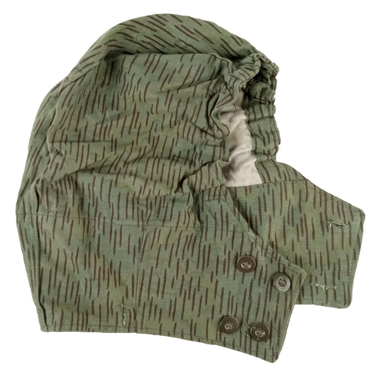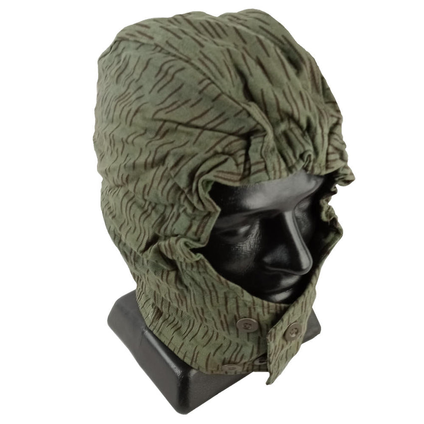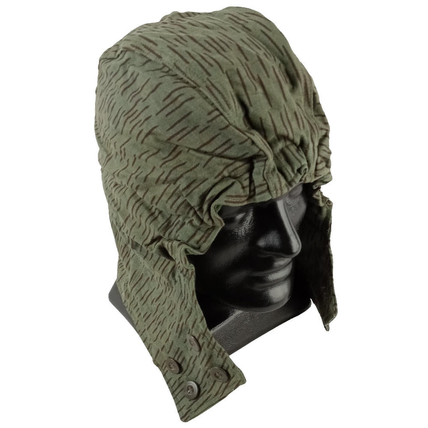 The Czechoslovakian army M60 hood/helmet cover was issued to troops in the 1960s and worn through to the 80's. The 'needles' or 'clouds' pattern looks similar to the East German 'rain' pattern camouflage, however it has a subtle pattern on the background.