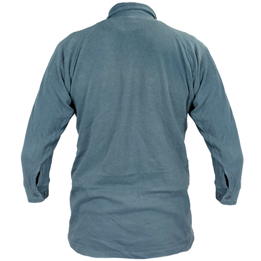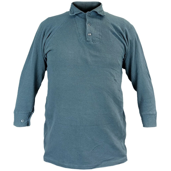 These undershirts have remained elusive as to exactly where their service history was - perhaps they were Navy, Army, Airforce or Civil Defense but they have come from Danish military stocks! One thing we can ascertain though is they make for a decent under layer in temperate environments where it is a little chilly and look pretty groovy! Made from what we can best describe as a 'polo' type/waffle weave, the shirts provide a fair amount of stretch and are fairly breathable. A simple button up collar gives you some basic adjustment. These sleeves wear quite short, more like 3/4 length, so it might pay to imagine a weary cig smoking Danish sailor with his sleeves rolled up!