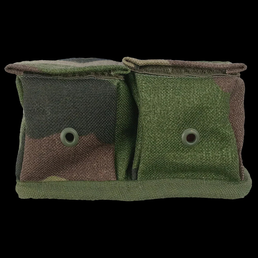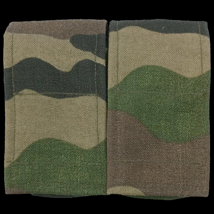40 mike-mike? Oui, oui! These French double compartment pouches are a great addition to the French F2 assault vest, stocking up on 40mm ordinance elsewhere or repurposed to carry smaller items on a belt. Each pouch has hook & loop closure with some allowance for height adjustment and has eyelets to the bottom to drain any unwanted debris. If you're a fan of French CE camo, these are a great addition to your EDC, loadout or French collection.