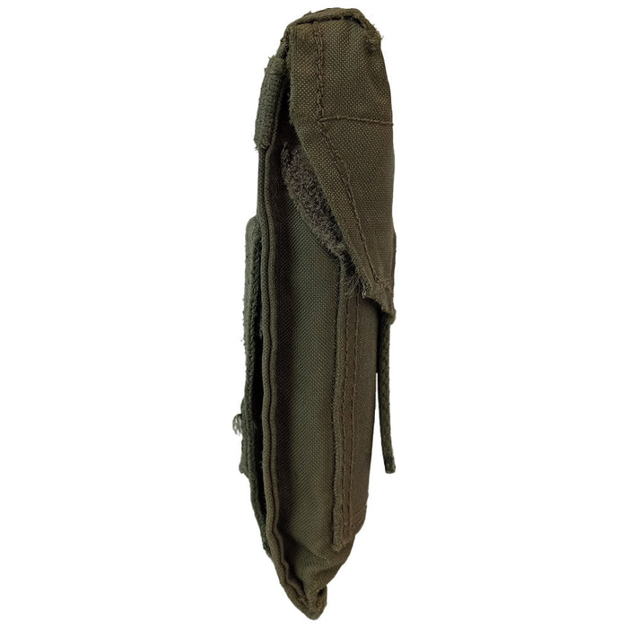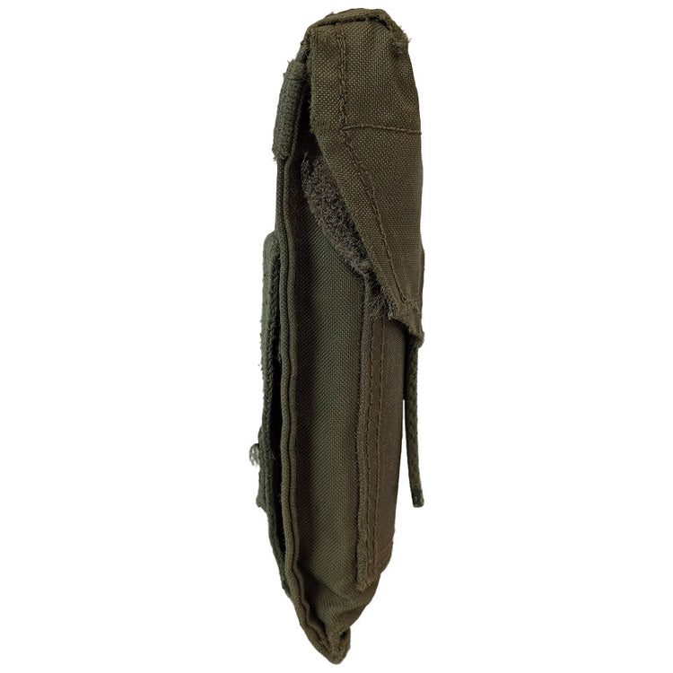 Part of the F1 system during the 1970's, these cleaning pouches were what was issued with the French FAMAS. Long now empty, these humble pouches were probably filled with various barrel cleaning tools. They have two pockets (one low profile) under the hook and loop flap. It has a large 8cm belt loop to the rear which makes this pouch handy for your EDC needs!