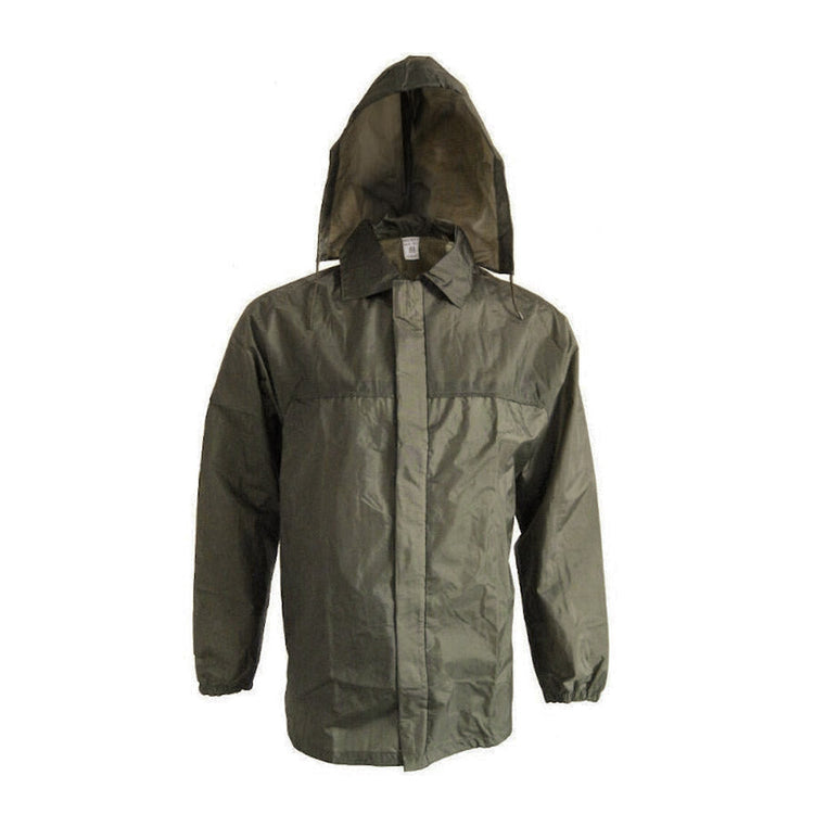 A great lightweight, olive drab coloured rain jacket from the French Army. These are no fuss, quick rain covers that should keep the wet stuff off you long enough to run and find a heftier jacket, or keep you from those pesky light downpours that come out of nowhere. A convenient feature of this jacket is that it tucks into an internal zip-up pocket with elastic straps and quick release buckle which can be worn as a waist pack.