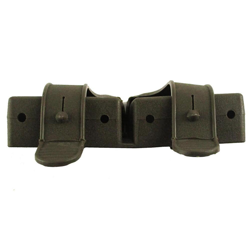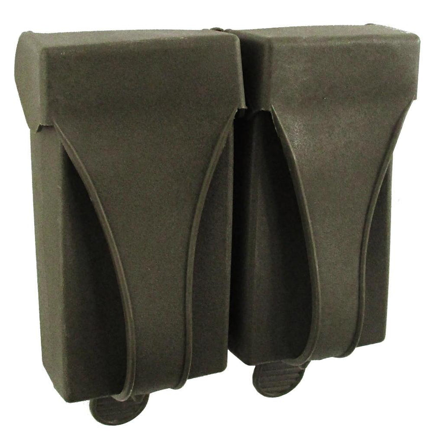 These late model G3 / HK 7.62 magazine pouches utilize a durable and waterproof rubberised vinyl construction rather than nylon or canvas. This provides a stiff shape and extra protection from bumps and scrapes. Dated around the mid 1980's, coming to the close of the Cold War. The mags secure in with individual flaps which secure at the bottom. Designed to fit on the Bundeswehr combat belt with the two 5cm loops of the back. A rugged piece for airsoft and paintball players add to the combat gear. Or add some late Cold War gear to your German military collection.