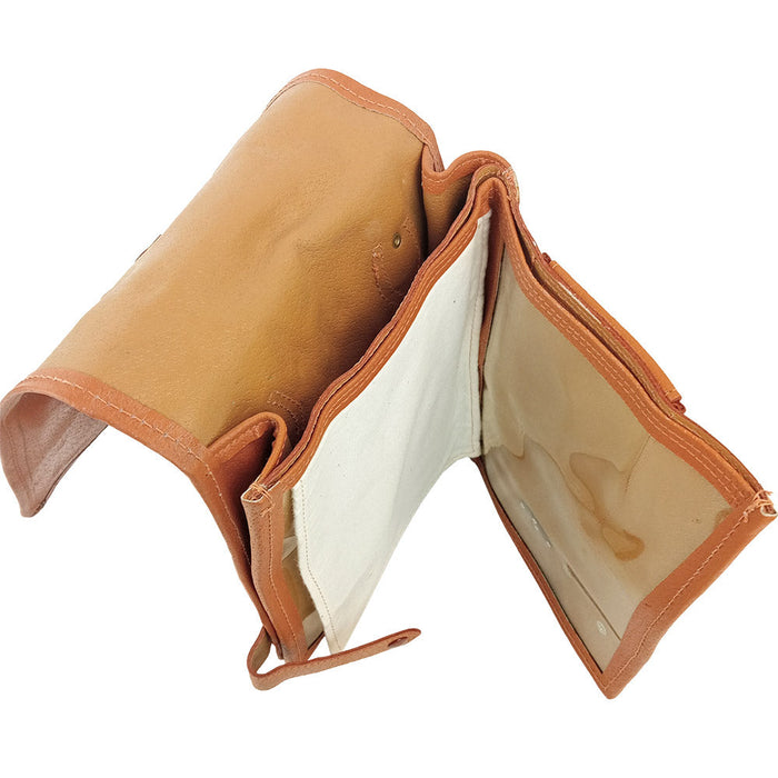 Made from robust artificial leather, these Hungarian map bags are a handy retro piece. Under the lid are pockets for pens, extra bits and behind this is a clear, fold out map window. This window is protected on one half by a cloth and this acts as a nice interleaf for the vinyl and you could wipe away any mystery mud or rain too. Behind this map window is a compartment to store more goods, spare maps - whatever you like. Through ergonomic design, the body is expandable and lid accommodates some extra width from cramming contents in. To carry this guy around it has a detachable, adjustable shoulder strap. These seem to have been in storage for quite some time - the exteriors may have some gunk which appears to wipe off, some cloths are a bit discoloured and the interiors are a little stiff but appear unused. A retro looking day bag for stationary, bookworms, luddite travellers, oldschool geoscientists and naturalists, small electronics, or a piece for a Hungarian collector.
