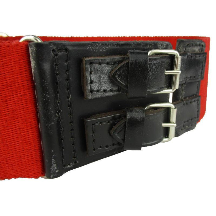 Colour: Red belt with black leather buckles