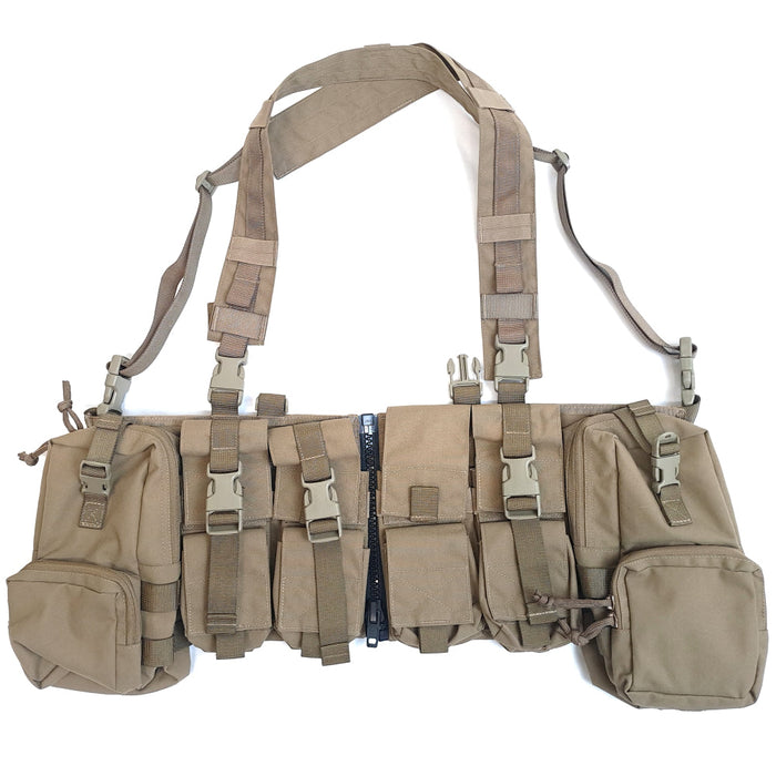 Platatac VM Load Bearing Chest Rig Set in coyote. Comes in Chimcom style harness configuration. Does not included parts for H-harness.