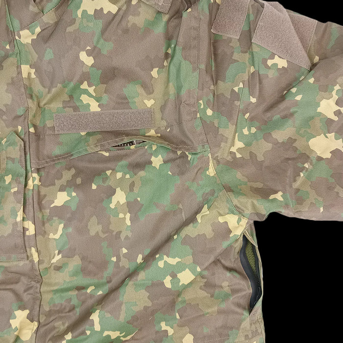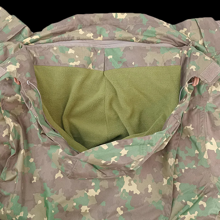 These Romanian jackets have a surprising amount of loft for overall weight. Combined with a quilted and fuzzy fleece lining to the upper torso, these keep you nice and toasty. Snow and rain are repelled by the water resistant exterior and an interior snow skirt keeps that stuff out from underneath. If you're in for a cold and wet winter, heard the magnificence of these jackets or just love that funky Romanian camo, these are for you.