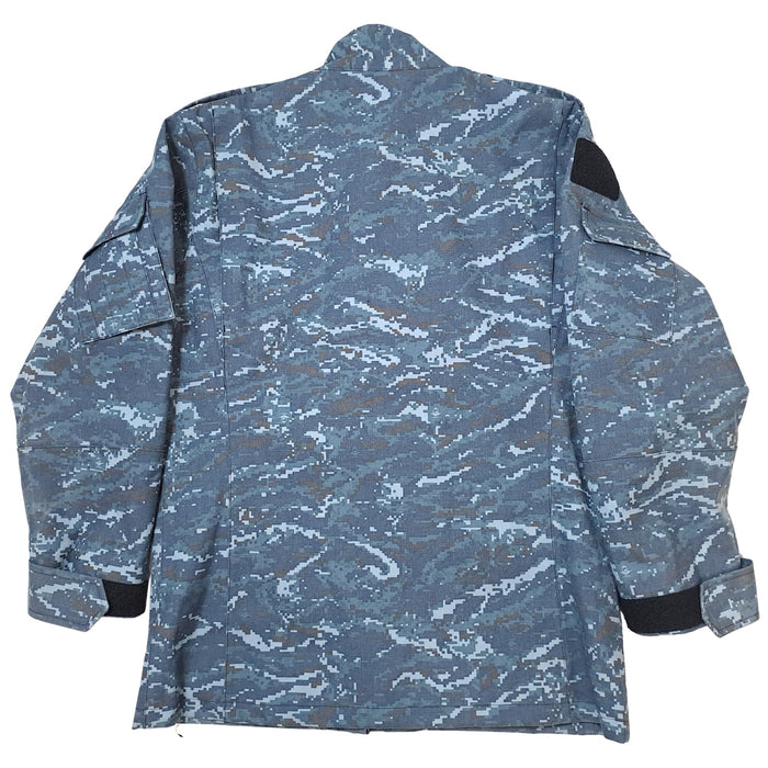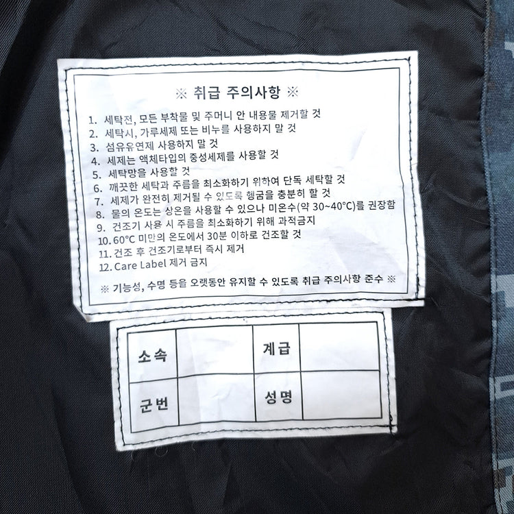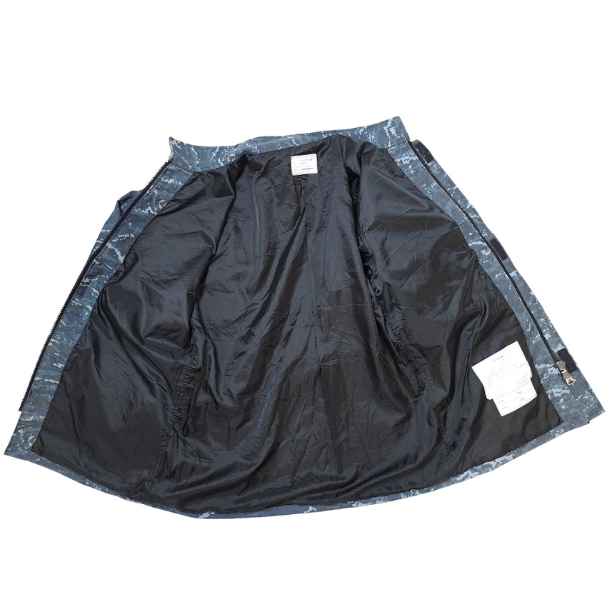 Republic of Korea Navy cold weather jacket in blue digital camouflage.