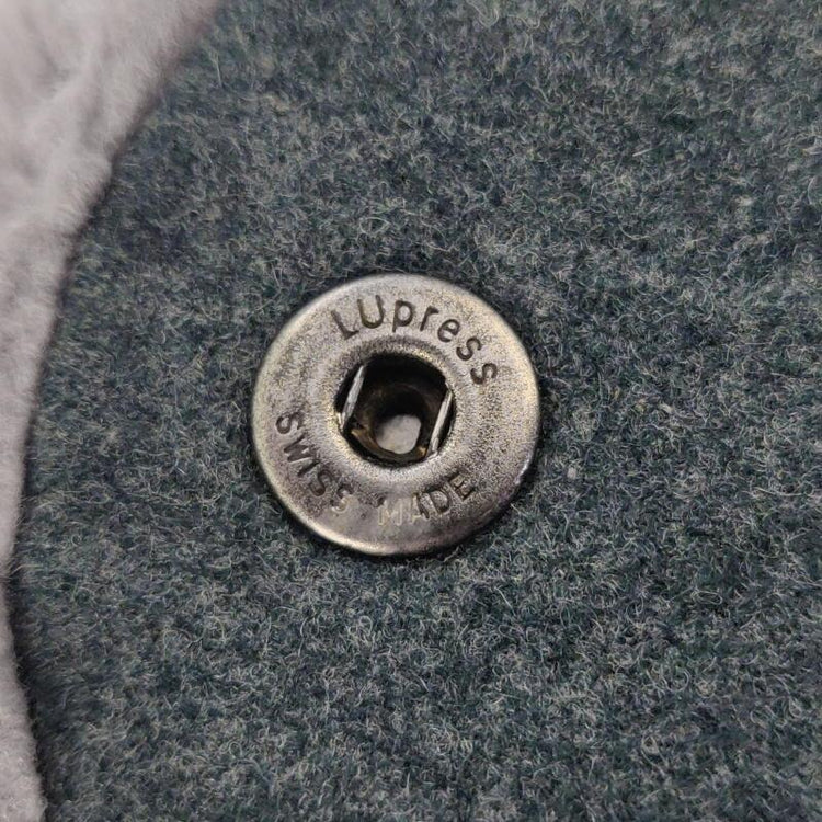 In typical winter hat fashion, the ear flaps can be folded up and secured with snap domes. These snap domes are detailed nicely with the engraving "SWISS MADE". A fine and practical piece of vintage headwear, ready for your next outdoor winter blast.