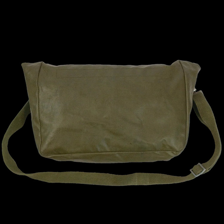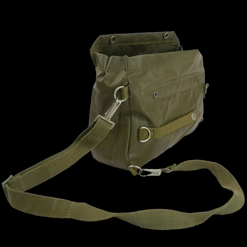 Another great quality Swiss product. This gas mask bag is rubber coated canvas, making the bag both water resistant and durable. It also has a full-length hook & loop closure pocket on the inside. With four D-rings in each corner you can also move the adjustable shoulder strap into any position that suits you. A great bag for campers or anyone needing to keep gear safe and dry.