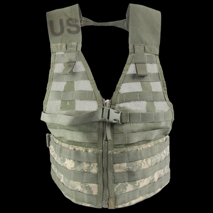 This vest is a genuine piece of US Army surplus, officially named the 'SDS Zippered FLC (Fighting Load Carrier) Vest'. It is a component of the Modular Lightweight Load-carrying Equipment (MOLLE) system. The popular modular webbing attachment system allows numerous components to be carried on the vest, such as magazine pouches, radio pouches and tools for the battlefield. Attach any MOLLE compatible surplus accessories or simply use carabiner clips to attach items. This iteration comes in the UCP (Universal Camouflage Pattern).