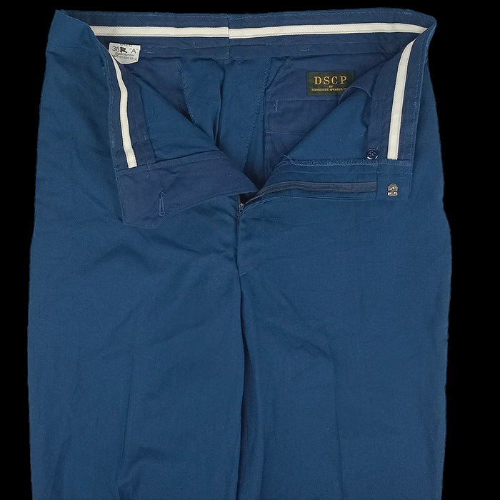 As a few branches have worn dress blues over time, these are sold as a mix of branch origins. Also since these have been worn over a fair amount of time in the States, they range in content - some are polyester, some are poly-wool blends. Regardless, they are a good and fine pair of slacks, if you are fond of blue!