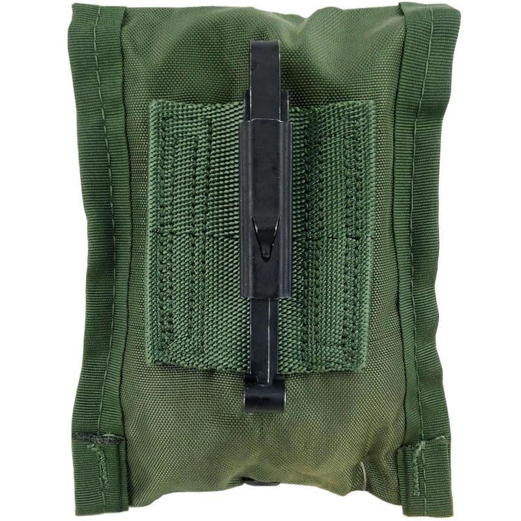 Genuine Government Issue rugged O.D. nylon Compass / First Aid pouch. Made for the U.S. Alice web gear system, this design goes back to the Vietnam war and is still in use today. Great for carrying your compass, bandages, tourniquet or any other compact items.