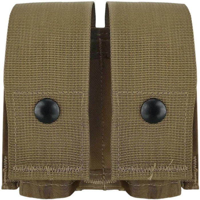 A genuine US Army pouch to hold a pair of 40mm, M203 rifle grenade rounds. Designed for the MOLLE II attachment system so the pouch can be carried on combat vests, belts and other load bearing gear. The pouch features two compartments each with a snap dome cover made from durable Cordura nylon. The bottom is also open – don’t worry it won’t lose your grenade round, it is designed to drain any water from building up in the pouch. Use one of these pouches to carry 40mm airsoft/paintball gas grenades. Or pick one up for your US military collection.