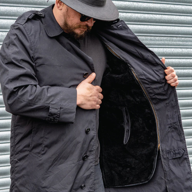 These are a picked at random mix of US Air Force dark navy blue and Army black, used over dress uniforms. With a removable zip in liner, accommodating multiple seasons with one coat is a breeze.