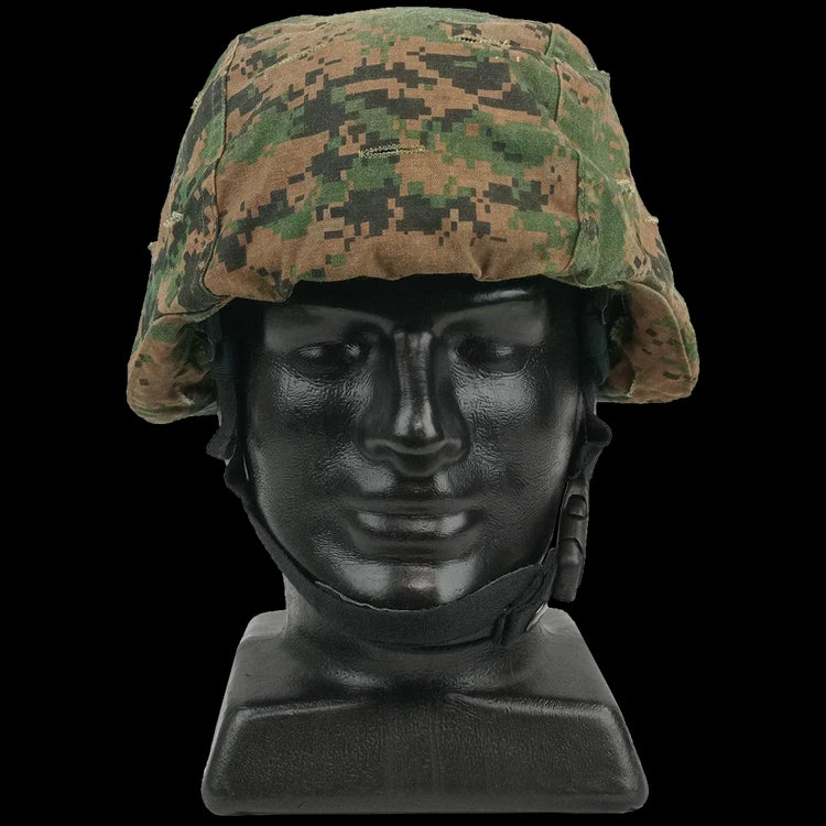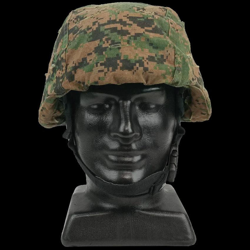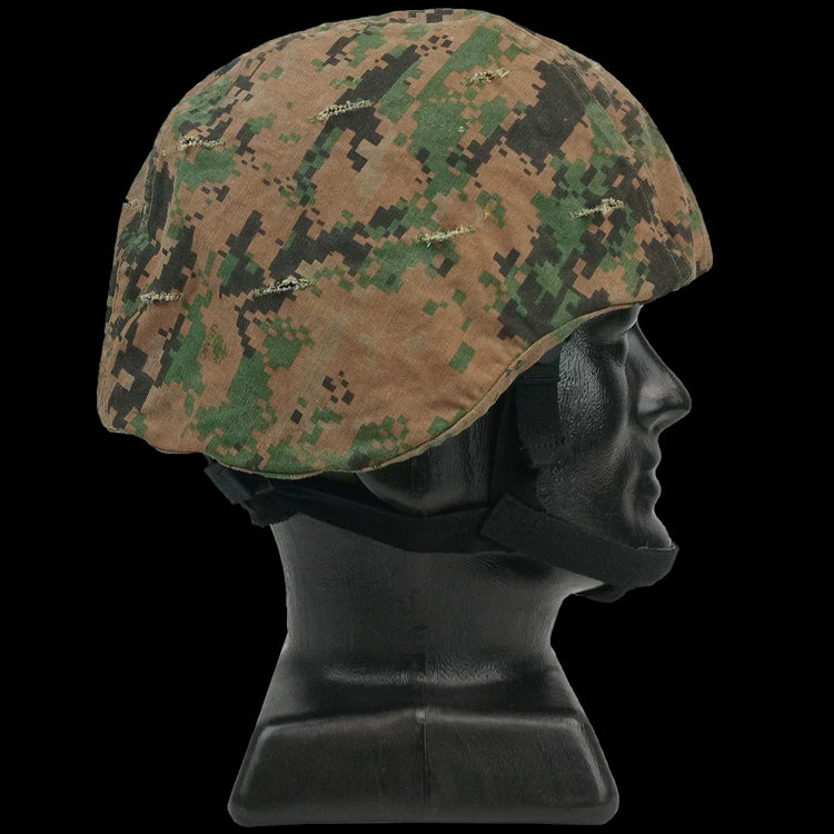The covers are suitable for use with PASGT, LWH, or similar helmets with a pad system (the one pictured is over a replica MICH). Seven hook & loop tabs attach the cover to the helmets inner liner for a secure fit.