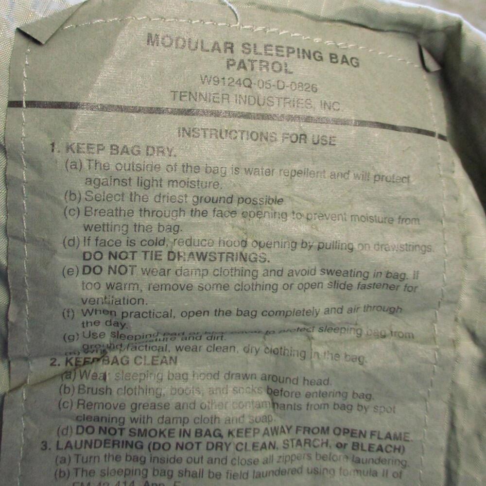 This patrol bag is the lighter of the two sleeping bags from the ECWS and is intended for warmer temperatures. The double zip can be pulled from both ends, allowing ventilation from the top or bottom. An adjustable drawstring around the hood helps retain heat within the sleeping bag. The construction is a water resistant, ripstop nylon fabric. This is genuine U.S. Military surplus, so you know you're getting a high quality sleeping bag.