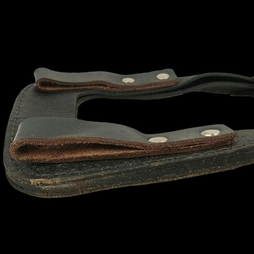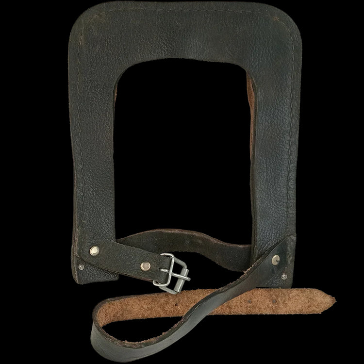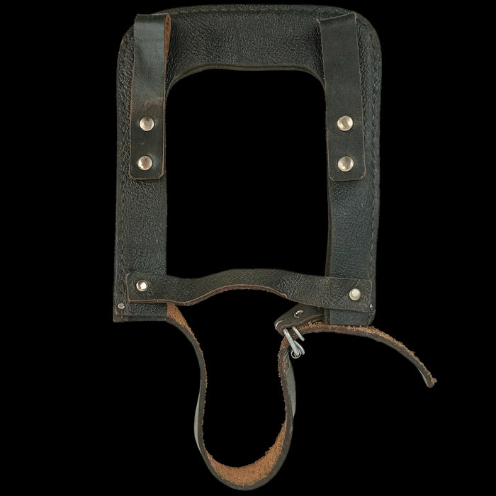 More accessories for East German kit or square shovel travelers. These leather shovel carriers are designed to carry the square headed East German (NVA) shovel. With belt loops to the back and long strap to wrap around a shovel handle, you can keep your entrenching tool nice, handy and secure.