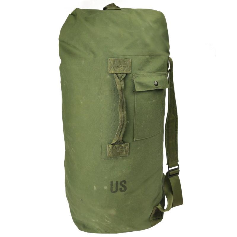 This is a seriously heavy duty duffel bag. Genuine US army gear built tough for military life. Its shoulder straps and carrying handle make it easy to lug around the huge amount of gear you can stuff in this mean green pack. The opening can be secured shut by threading the metal loop through the eyelets and attaching back to the clasp, an innovative and easy to access design.