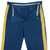 US Army service dress trousers for officers are navy blue with a distinct yellow stripe running down the outer seam. The trousers are made from a range of materials, typically a polyester to poly-wool blend, offering both durability and comfort. They feature a sharp, professional appearance, designed to be worn with the Army’s formal service dress uniform.
