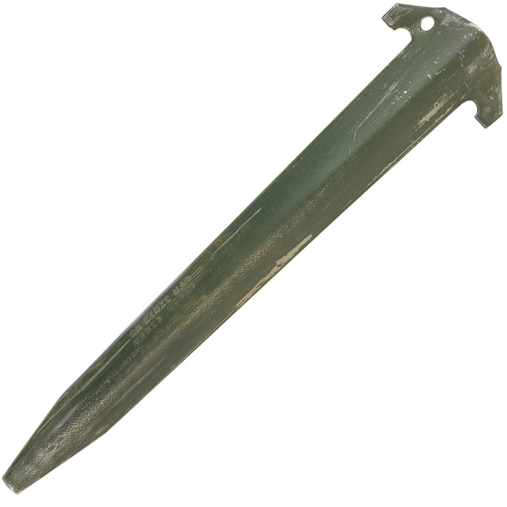 Originally used with the 2-man shelter for troops of the U.S. Army, these aluminium tent pegs can now be bought individually for your own tent, shelter, basha or as spares. The T-shaped design measures 22.5 cm long and reaches 4cm wide just below the head, with the head itself being 7.2cm wide. All pegs feature a hole at the top for staking out guy lines. Pick a few of these up for some military-grade pegs to replace your existing ones or keep them as spares.
