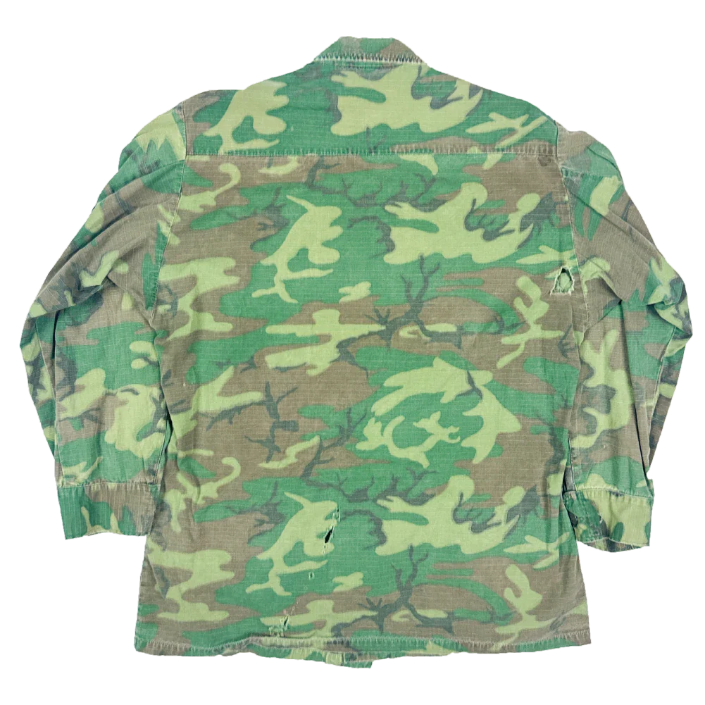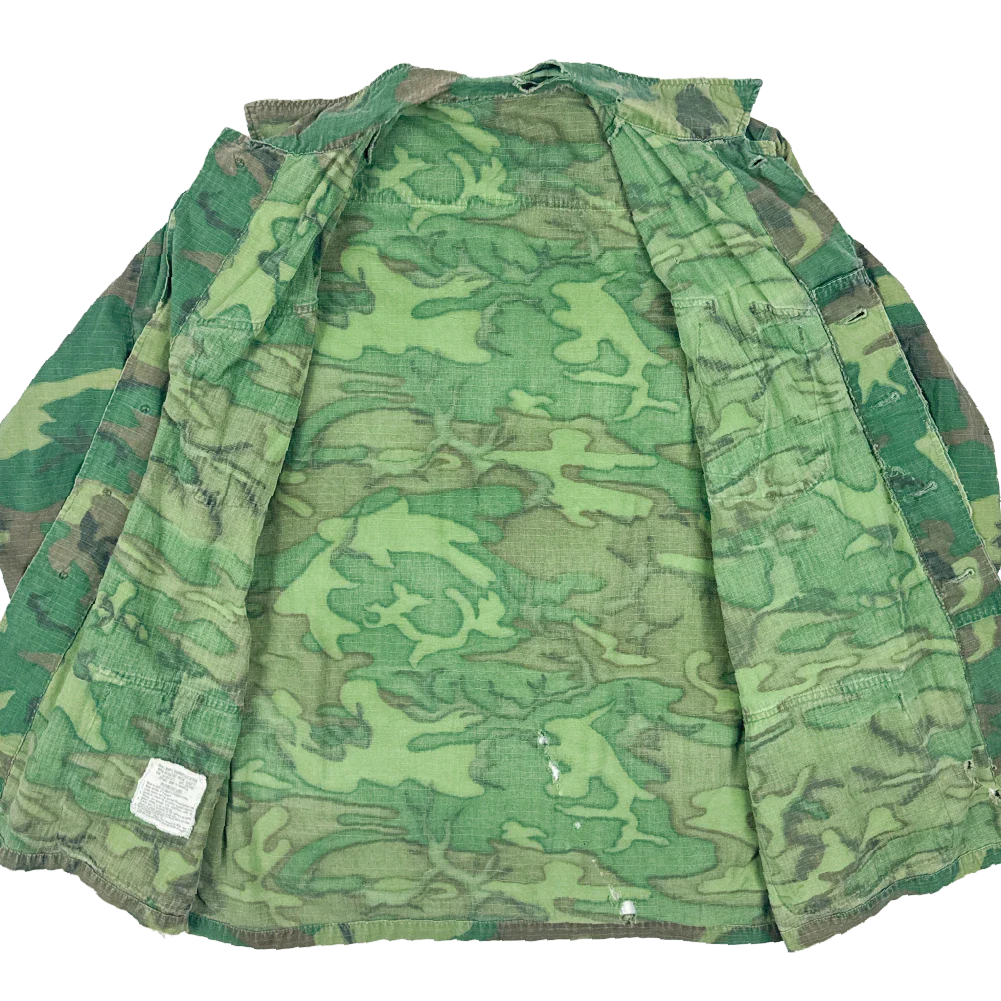 Vietnam era US ERDL jungle shirt manufactured in 1968. This is a ripstop field shirt with a four pocket front and button adjustable cuffs.