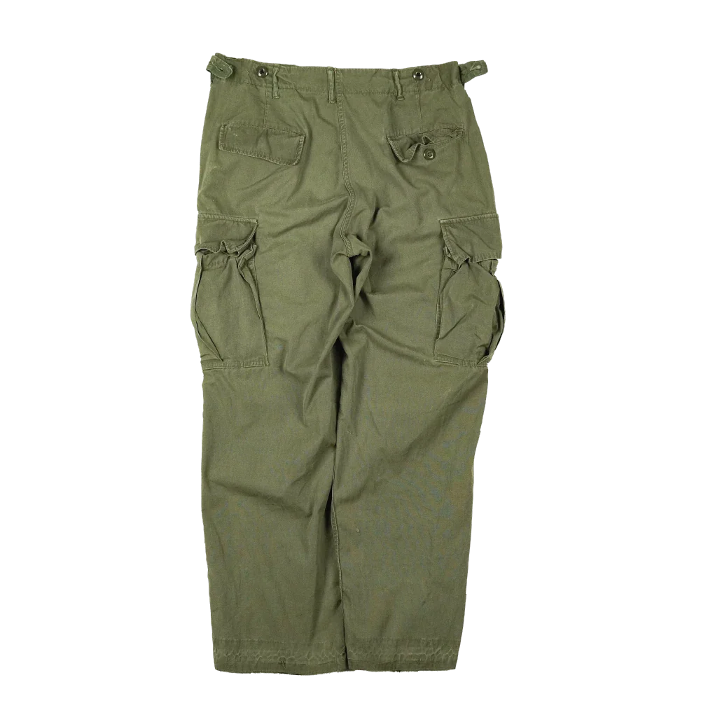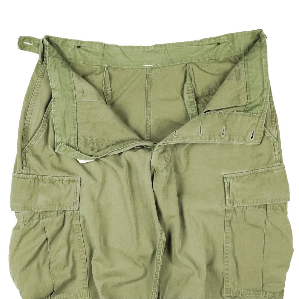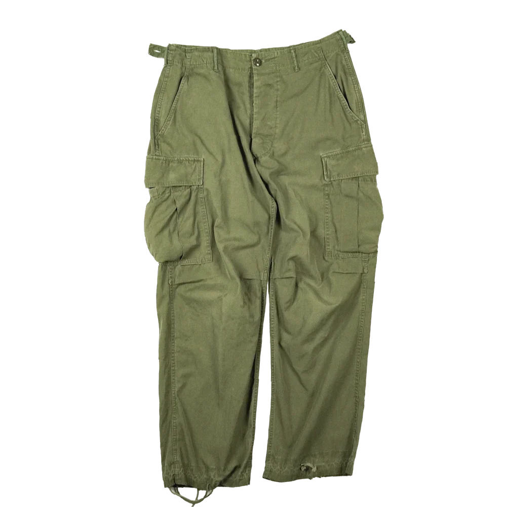 USGI 2nd Pattern Jungle Fatigue Trousers with a contract number marked “DSA-100-1294.” This is a surplus military garment with standard jungle fatigue construction details consistent with the period.
